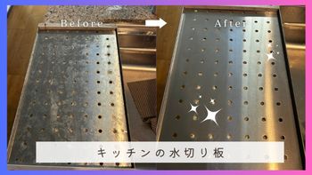 水垢とカビで汚れている水切りの板。プロの施工で新品同様の輝きです。ご希望があれば撥水加工もさせていただきます。