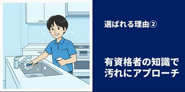 NPO法人日本ハウスクリーニング協会が認定する「ハウスクリーニング士」の資格を持つプロが、専門知識を活かして汚れにアプローチします。