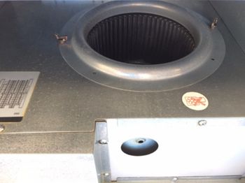 常時換気の設計の為、油の付着した内部にビッシリとホコリが付着していました…。
