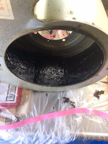 ドラム内部の油蓄積。もうドラムが回らない手前でした。
