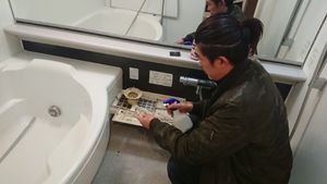 分解した備品も浸け置き後に、洗浄しピカピカに。