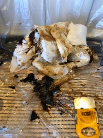 ファンの下に溜まってる油をかき集めた映像です、汚いですけどしっかり、かき取ります✨