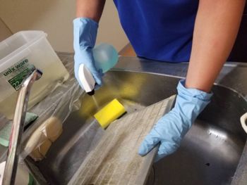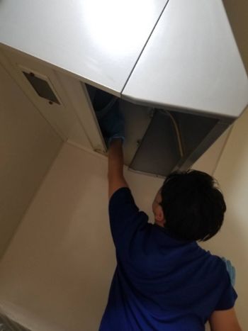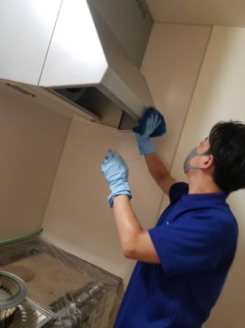 レンジフードについた油汚れ、カビなどをしっかりと洗い落とします。