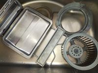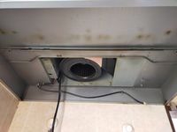 サビとなっている汚れ、長年堆積して厚みを増してカチカチに固まっている油汚れ、プロペラファンの排出口に堆積している固まっている油汚れ等… 業者用の洗剤、高温漬け置きで大体は落とせますが、やはり落としきれない汚れはあります。