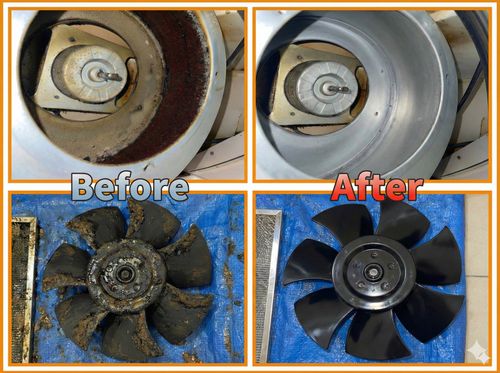 フード内やシロッコファン内部を洗浄いたします。