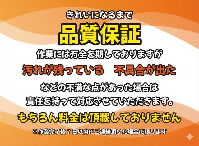 ・専用の道具・洗剤を使用させていただきますので、設備の劣化などで塗装がはがれてしまう場合があります。ご容赦ください。
