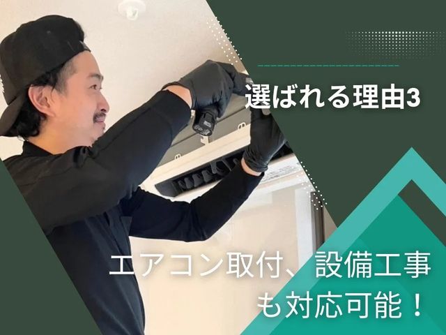 ハウスクリーニングはもちろん、エアコン取付や各種設備工事まで一貫対応。