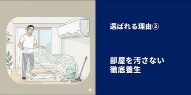 家具や家財を傷つけない配慮はもちろん、使用する洗剤は身体に害のないものを選定し、小さなお子様やペットのいるご家庭でも安心してご依頼いただけます。これからも地域の皆様の暮らしを快適にするため、誠実に取り組んでまいります。