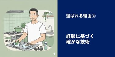経験を重ねる中で培った「汚れの種類の見極め」と「薬剤選定の知識」で、キッチン全体を衛生的な状態に仕上げます。