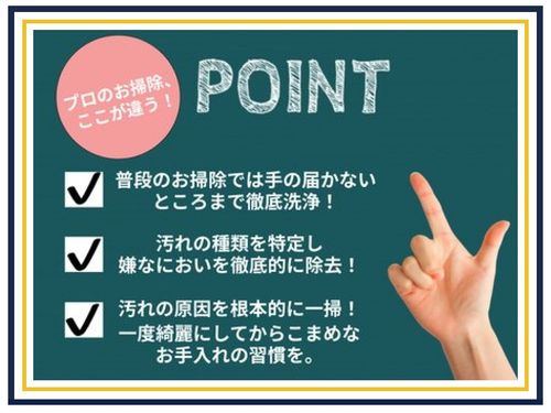 家庭用洗剤では落とせない汚れに対応出来るよう、専門的な知識を使ってあらゆる汚れに対応します!