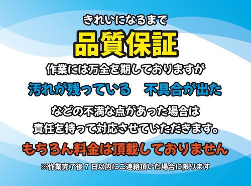 ・クリーニング全般において、設備自体が10年以上経過しているモノについては保障しかねる場合があります。