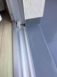 1)床まわりに水がこぼれないように養生を行い、レールなどの汚れをブラシなどを使用して落とします。専用の洗剤でガラス・サッシ・レール部分を清掃します。