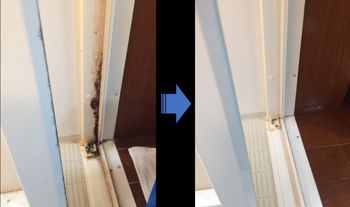 ドアを枠が分離させると軸部分にはカビ汚れが潜んでいました。