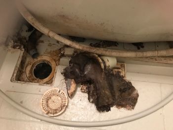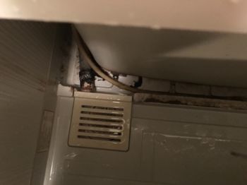 賃貸物件等のお風呂のエプロン内は大抵、海苔養殖場になってます。この物件は排水ホースが劣化で折れているので汚れに追いうちをかけています。