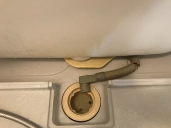 ここで終わる業者が殆どだと思いますが、この時、高圧洗浄機だけで終わると浴槽の真下にある大規模海苔養殖場を除去できませんので可能な限り高圧洗浄機のノズルを差し込んだ上で何度もバケツの水で流します。高圧洗浄機だけですと水圧は強いですが水量が少ない為、汚れを押し流せません。