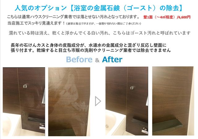 白いモヤモヤの金属石鹸(ゴースト)の除去、承ります。こちらは通常、ハウスクリーニング会社では