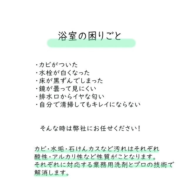 🚩浴室のカビ・水垢取りならおまかせ🚩口コミ高評価🚩作業品質保証🚩協会認定クリーニング士