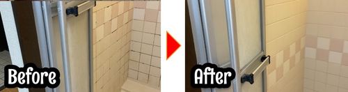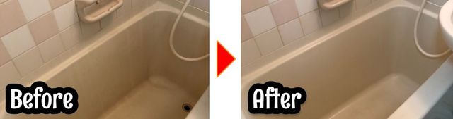 特にお風呂場の白い壁、浴槽などの場合、パッと見で分からない場合も多く、触って表面のザラザラした汚れが無くなる迄研磨します。研磨が終わるとツルツルになって気持ち良くなります。