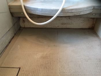 鏡や水栓周辺の白くこびりついた石鹸カス汚れも。