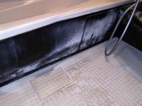 ユニットバスの場合、エプロンという浴槽の前面を覆うカバーが付います。 エプロンを外すとその中は黒カビや石鹸カス、髪の毛、ゴミなどでキタナイです。(画像)掃除前のエプロン内部。浴室はしっかり掃除していても なんだかカビ臭い、ニオウ場合はエプロン内部が原因の場合もあります。汚れが溜まりやすいエプロン内部の掃除をお奨めしております。