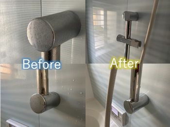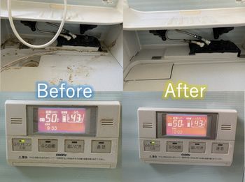 エプロン内部も漂白除菌&高圧洗浄します。給湯器リモコンは傷がつかない程度に綺麗にします!