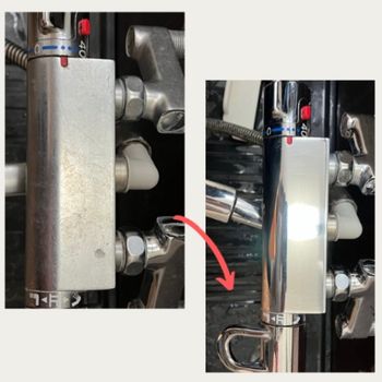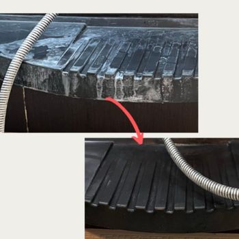 カビや水垢を除去する事が明らかに範囲が広く、また、エプロン内など普段行わない所を丁寧に洗いますよ!