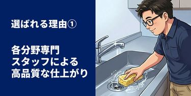 私たちの強みは、キッチン、エアコン、浴室など、それぞれの分野を得意とする専門スタッフが在籍していることです。