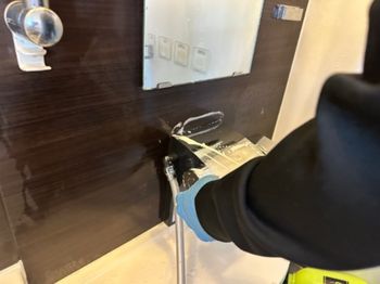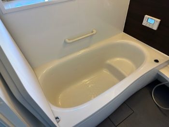 バスタブは傷がつかないよう注意深く、柔らかいスポンジで丁寧に仕上げます。