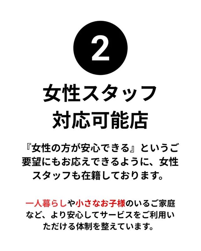 ⭐️安心の女性スタッフが作業⭐️女性のお客様も安心でき、男性ももちろん大歓迎です♪