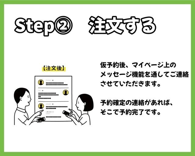 ・ご注文が集中し、ご希望の日時に伺えない場合がございます。その場合は、【メッセージ】にて改めて日時をお伺いします。
