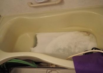 逗子市山の根の築10年の戸建ての風呂釜洗浄+浴槽エプロン内と排水口の高圧洗浄です。②