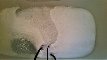 風呂釜洗浄中 → マイクロバブルの泡が配管内の汚れを掻き出します。
