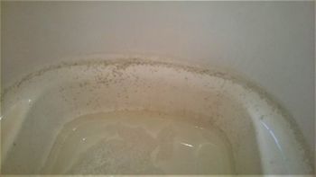 風呂釜洗浄後 → 配管内から掻き出された汚れ=湯垢・湯ドロ・雑菌の死骸など。