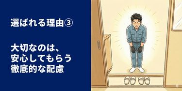私が最も大切にしているのは「お客様のプライベート空間にお邪魔する」という配慮です。