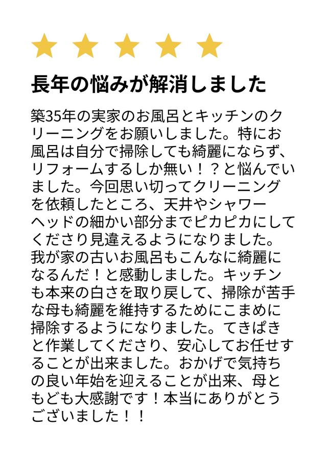 作業前、作業中、作業後のコミュニケーションを1番大切にしています。プロにしか落とせない感動の「Before」「After」をぜひ実感してみてください!