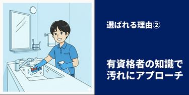 NPO法人日本ハウスクリーニング協会が認定する「ハウスクリーニング士」の資格を持つプロが、専門知識を活かして汚れにアプローチします。
