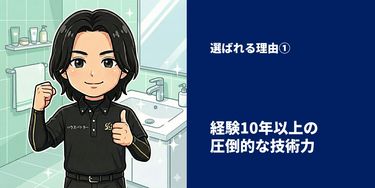 1. エアコン内部洗浄(分解洗浄) 技術のポイント:ドレンパンや送風ファンまで分解し、カビやホコリ、雑菌を徹底除去。 使用道具:高圧洗浄機、専用洗剤、養生シート なぜ自信が持てる?:ニオイや効きの悪さが劇的に改善され、お客様の満足度が高い。 2. 浴室のカビ・水垢除去 技術のポイント:素材に応じた洗剤選定と道具の使い分け(酸性・アルカリ性の使い分け) 使用道具:酸性洗剤、スケール除去剤、パッド、ケレン なぜ自信が持てる?:プロでないと落とせないガンコな汚れを安全に除去できる。 3. レンジフード(換気扇)クリーニング 技術のポイント:分解の正確さと、油汚れを完全に落とす薬剤使用のノウハウ 使用道具:強アルカリ洗剤、温水槽、スクレーパー、刷毛など なぜ自信が持てる?:ベタつきが完全になくなり、動作音の改善にもつながる。 4. フローリングの洗浄+ワックス仕上げ 技術のポイント:材質に応じた洗浄とワックス選定。ムラなく仕上げるローラー技術。 使用道具:ポリッシャー、ワックスモップ、剥離剤など なぜ自信が持てる?:床が見違えるようにキレイになり、感動してもらえることが多い。 5. 作業後の「見えない部分までのチェック」 技術のポイント:作業後の仕上がり確認を丁寧に行い、取り残しがないかチェック やり方:ライトで照らして細部確認、クロスで指触りチェック なぜ自信が持てる?:お客様に「プロの仕事だ」と感じてもらえる大きな要因。 素材を傷めない洗剤・道具選び 養生(作業前の保護処理)の徹底 作業音・におい・水はねの配慮 お客様への説明や提案の丁寧さ 作業後の清掃・片付けの完璧さ