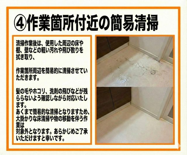 ・清掃箇所周辺のスペースの確保をお願いします。