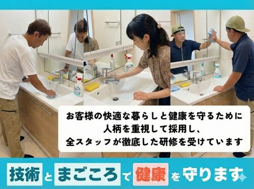 汚れに応じた洗剤の適切な濃度調整や、素材を傷めないようブラシ・スポンジ・高圧洗浄機の使い分けにはこだわっています。「強い洗剤を使えば落ちる」ではなく、「素材に優しく、最も効率よく汚れを落とす方法」を熟知しています。 プロの技術で、見た目だけでなく、清潔で快適な空間を長持ちさせることを心がけています!