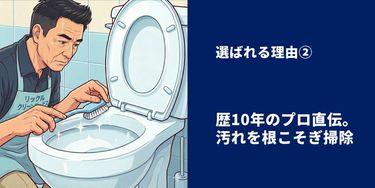 私たちは10年の経験を活かし、便器の素材を傷つけずに汚れだけを溶かす専用洗剤を使用します 。