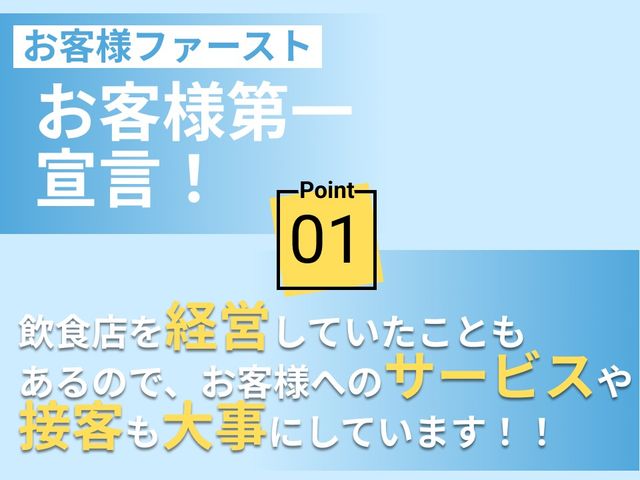 この業界をはじめて間もないですが、元飲食店経営の経験からお客さまへのサービス・接客を大事にしております。