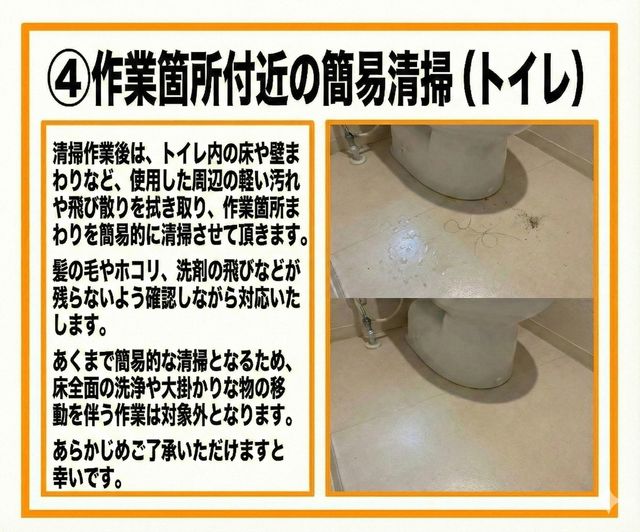 当店はハウスクリーニング全般に対応しております。トイレ清掃もお気軽にご相談ください。
