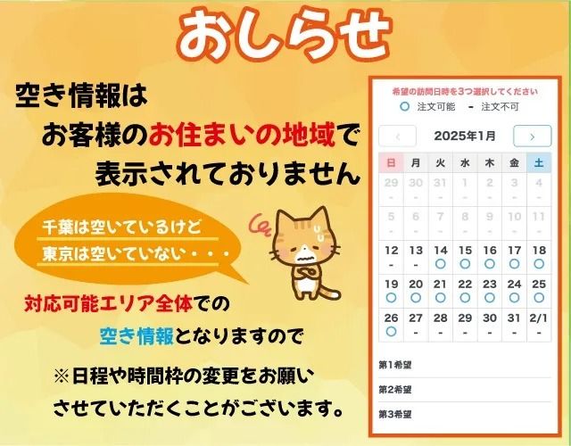 ・ご希望訪問日時が直前でのご注文には対応できません。最低3日以上の余裕をもってご注文ください。