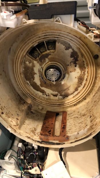 ドラム式洗濯機の洗濯槽とカバーの洗浄前です。