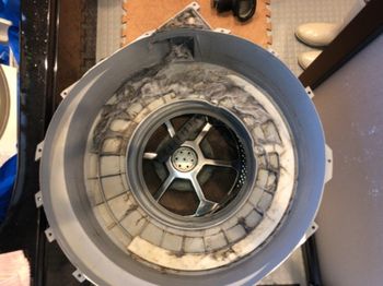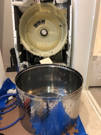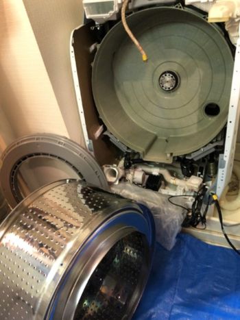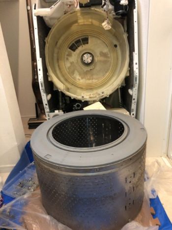ドラム式洗濯機の洗濯槽を取り外したところです。