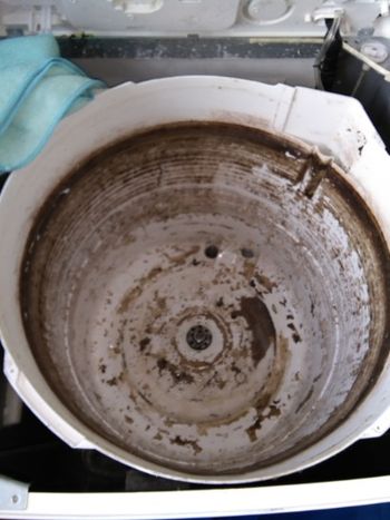 もちろんこのような状況で衣類を洗っています。洗濯槽の中から変なニオイがするというのはここが原因の可能性があります。