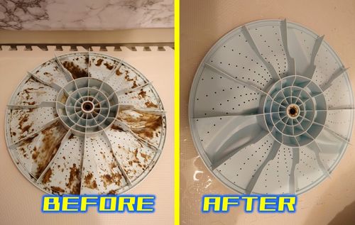市販の洗浄剤で手入れしているつもりでしたが、洗濯物にカスが付着してどうにもならない状態でした。