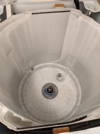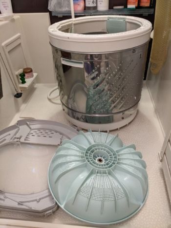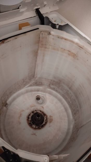 洗濯槽を取り外したところ、内側にもカビや洗剤カスが付着していました。