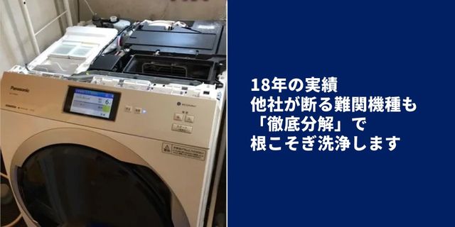 ドラム式洗濯機の分解洗浄は時間がかかりますので、お時間に余裕をもってご相談下さい。