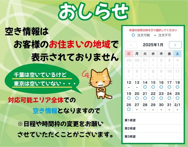■ ご予約が集中し、ご希望の日時に伺えない場合がございます。